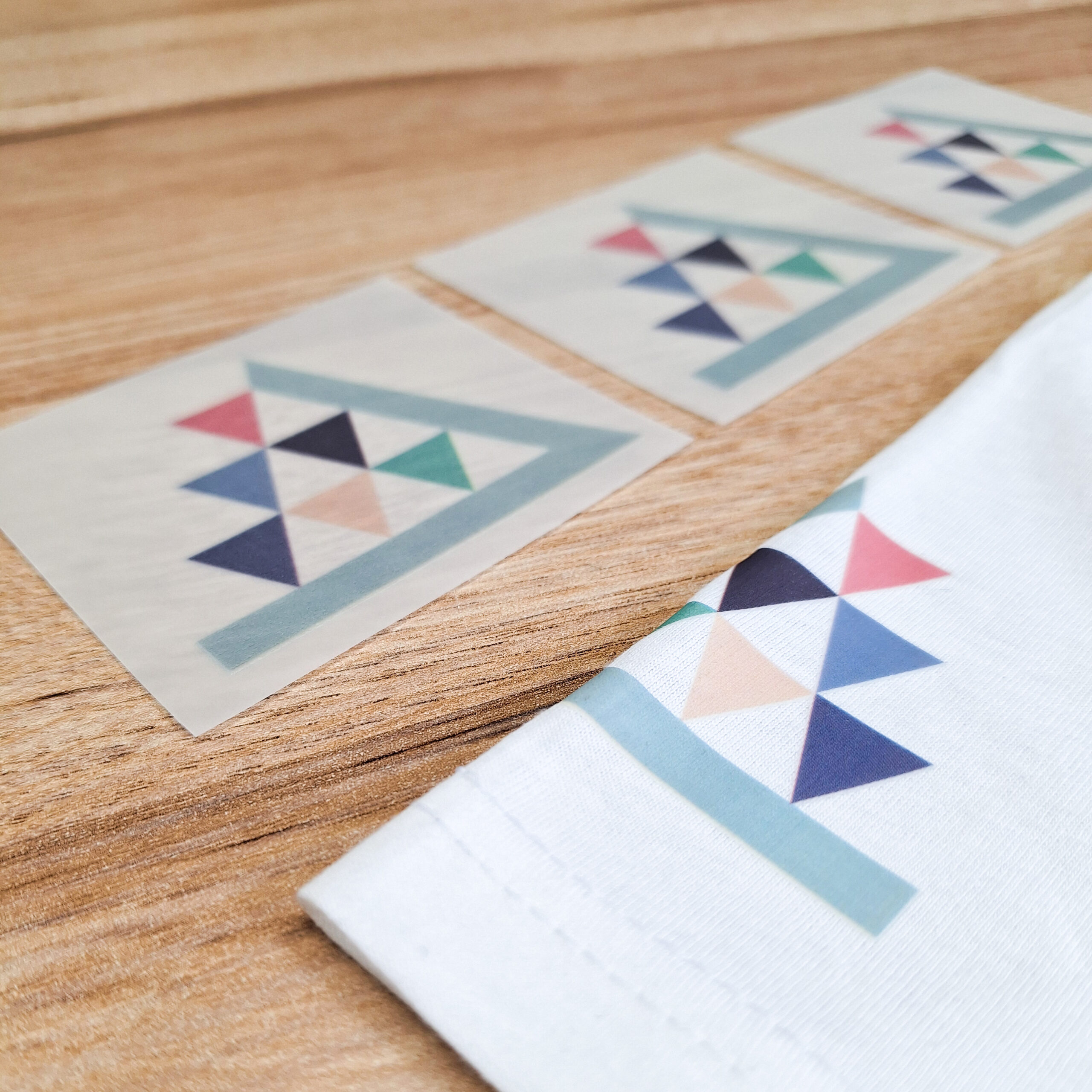 Despite being water-based, the inks are exceptionally vibrant and highly opaque – even on dark materials. The print appears strong, high-contrast, and visually refined. An additional blocker layer can be applied upon request to prevent pigment migration from polyester fabrics (for example, softshell materials) into the transfer.